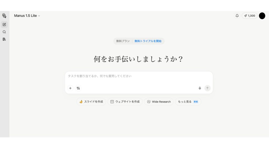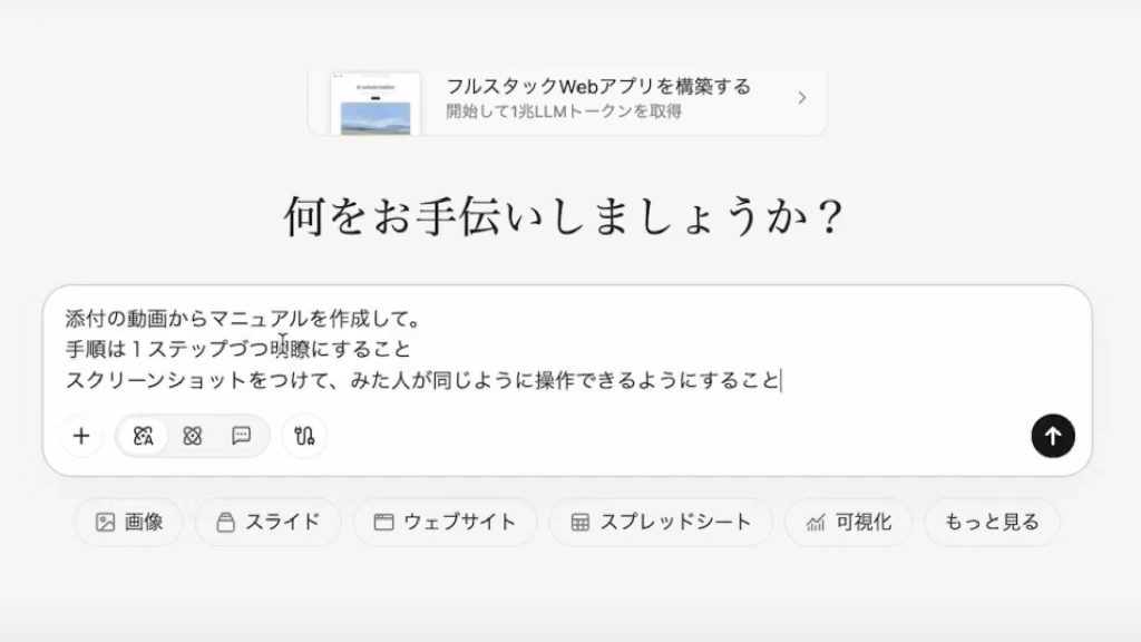 Manusにログインすると表示されるプロンプト入力欄に、以下の指示を入力します。