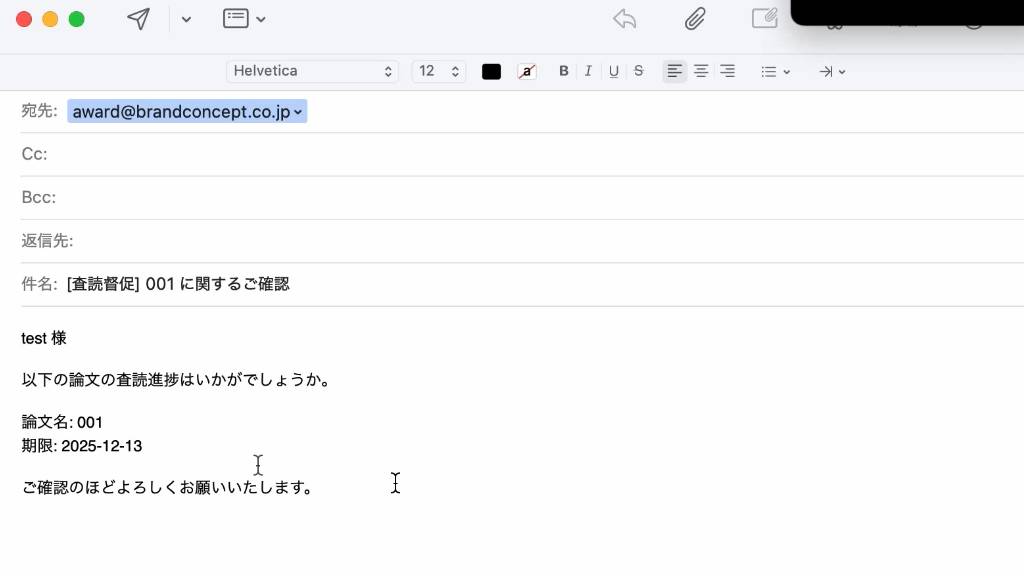 •コミュニケーション:査読依頼メール、進捗督促メールの自動送信