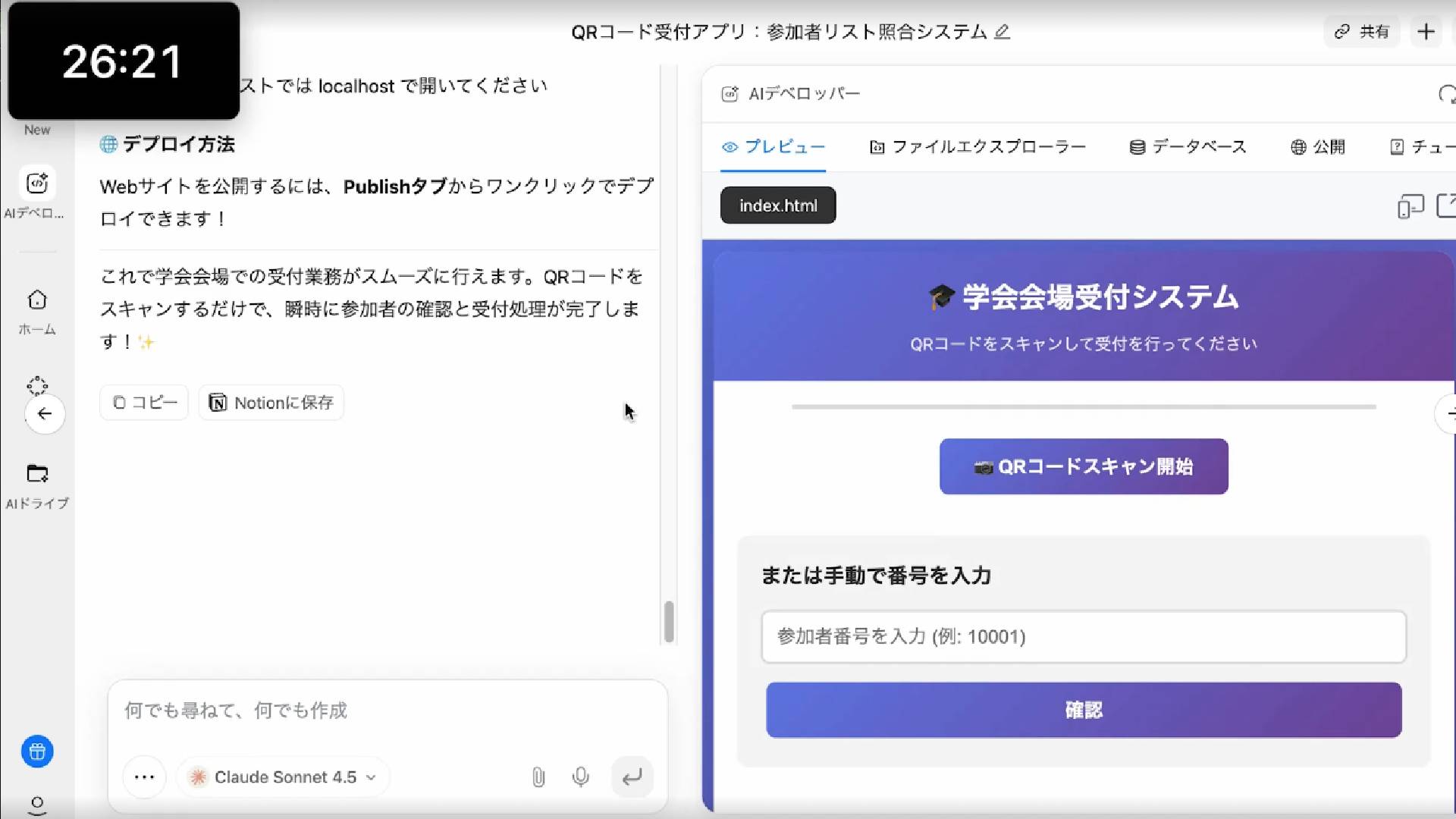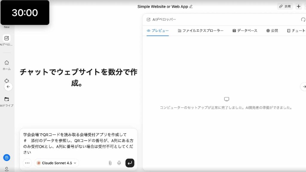 学会会場QRコード受付 AIエージェント 30分で学会会場QRコード受付AIを作成!