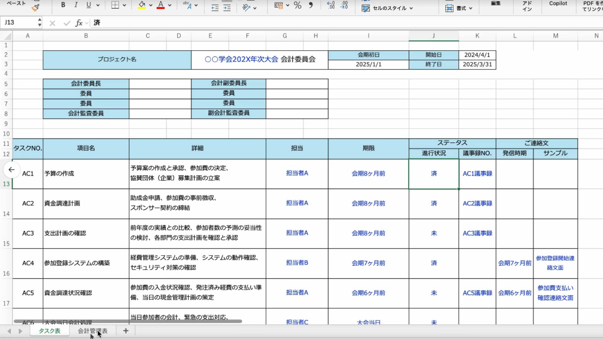 •タスクの一元管理:会計、広報、出版など、複数の委員会のタスクをタブで切り替えて管理します。