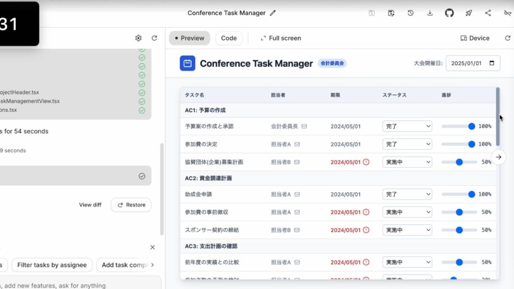 本記事では、Google AI Studioを活用し、学会運営における複雑なタスク管理と進行管理を自動化するAIエージェントを構築する方法を解説します。プログラミングの知識は不要で、対話形式でAIに指示を与えるだけで、複数の委員会にまたがるタスクを一元管理できる高機能なツールを作成できます。本稿では、その具体的な開発プロセスを、動画での実演を基に紹介します。