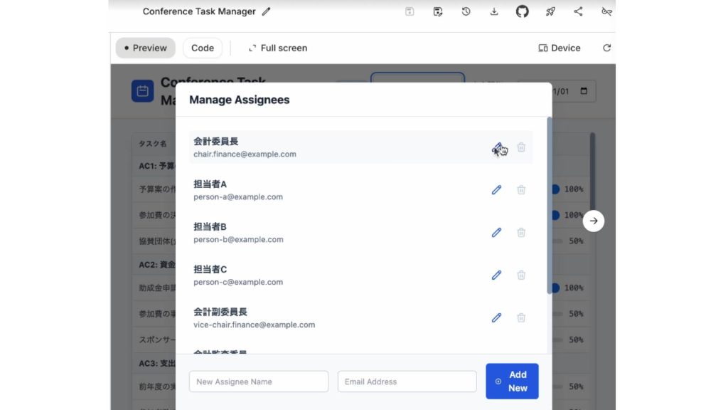「タスクの期限の編集機能を追加して」 「同様に広報委員会を別タブで追加」